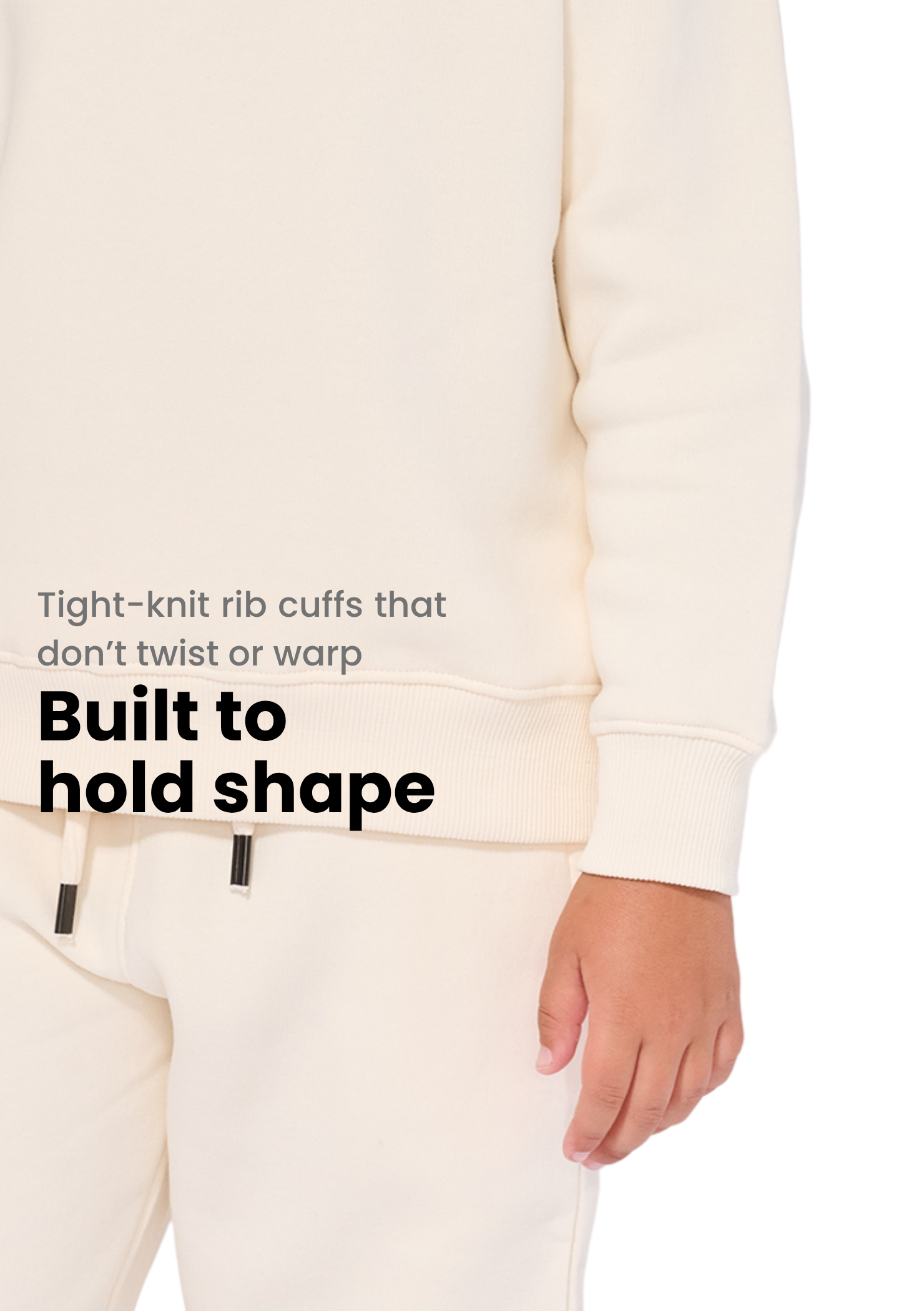 • Ribbed cuffs and hem for durability
