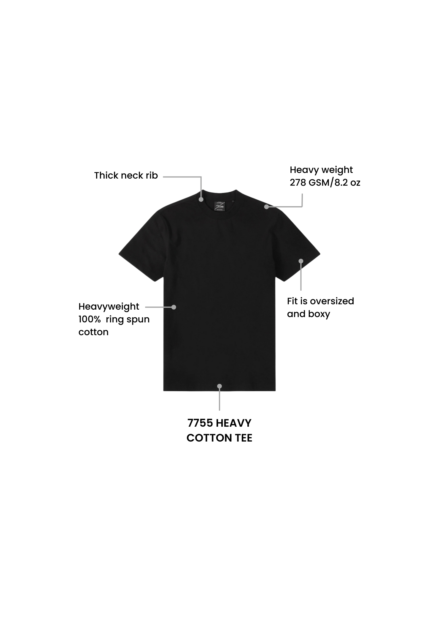 The AXISM 7755 is an extra-heavy 8.2 oz (280 gsm) 100% Cotton tee designed with an